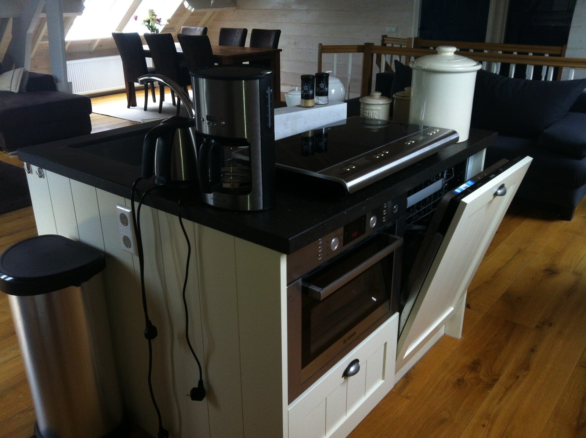 De living is met 50m² zeer ruim en voorzien van mooie eiken vloerdelen en openslaande deuren naar een Frans Balkon.